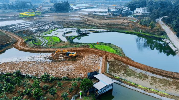 繼續(xù)向東,這里是萬里長江第一城——宜賓,在宜賓江安縣陽春鎮(zhèn),5000畝高標(biāo)準(zhǔn)農(nóng)田建設(shè)進入尾聲,項目高峰期投入30余臺徐工挖掘機。
