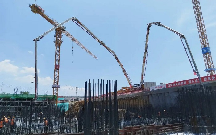 在南京北站核心區(qū)澆筑現(xiàn)場,徐工72米泵車以71.2米的布料高度精準覆蓋站房頂層作業(yè)面,連續(xù)48小時作業(yè)“零故障”的紀錄,完美應(yīng)對穹頂弧形結(jié)構(gòu)與站臺層復(fù)雜節(jié)點的澆筑需求。