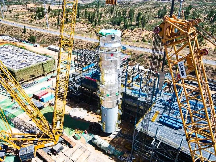 近日,在某大型多晶硅產(chǎn)業(yè)升級項目現(xiàn)場,徐工QUY450(450噸級)履帶起重機攜手XGC12000(800噸級)履帶起重機精密協(xié)同,成功完成項目首臺大型精餾塔吊裝任務。