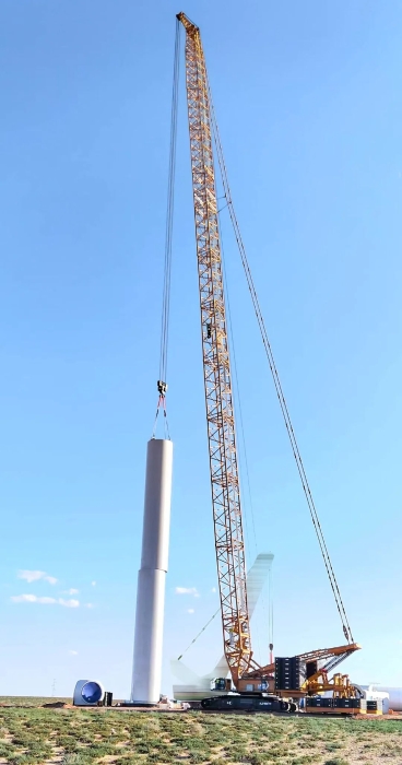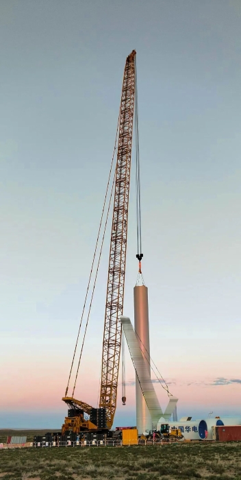 2025年5月,與河北采用195+5m超起工況完成首臺(tái)185m風(fēng)機(jī)吊裝;