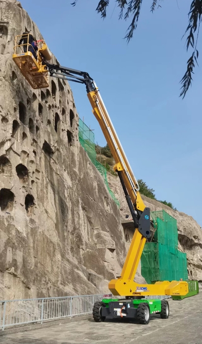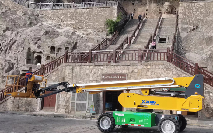 河南洛陽(yáng)龍門(mén)石窟文物保護(hù)工作中,徐工XGS25ACK-Li純電直臂高空作業(yè)平臺(tái)成為修復(fù)團(tuán)隊(duì)登高作業(yè)的堅(jiān)實(shí)支點(diǎn),以卓越操控性、極致平穩(wěn)性與零污染環(huán)保性托舉修復(fù)人員平穩(wěn)到達(dá)佛龕,助力危巖體加固、彩繪上色復(fù)原、清理歷史積塵等維護(hù)工作,助力古老窟龕煥新顏。