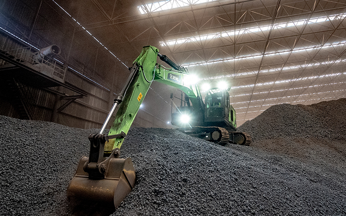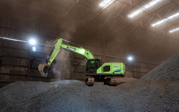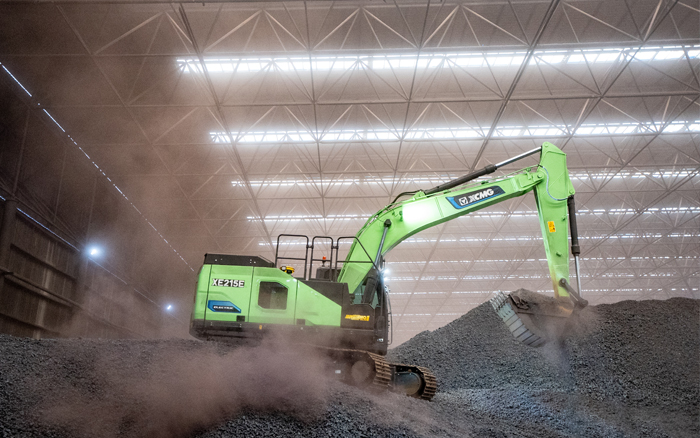 在封閉的廠房中,XE215EV純電動(dòng)挖掘機(jī)正對(duì)鋼鐵原料礦石進(jìn)行挖掘、搬運(yùn)作業(yè),鋼鐵冶煉廠屬于重灰塵環(huán)境,而XE215EV卻練就了一身“超級(jí)本領(lǐng)”。