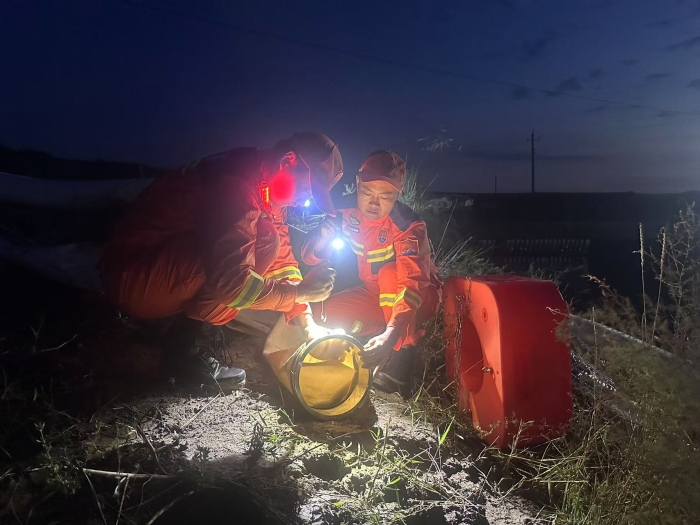 10名隊員輪班倒,迅速進入“24小時連軸轉(zhuǎn)”狀態(tài)。沒有一絲猶豫,他們踩泥漿、涉深水,卷起褲管開始鋪設水帶,科學調(diào)整作業(yè)方案。為避免抽水作業(yè)沖刷壩體,他們利用橡皮艇涉水劃到農(nóng)田中間固定水帶,以專業(yè)判斷化解潛在風險,彰顯科技救援的力量。