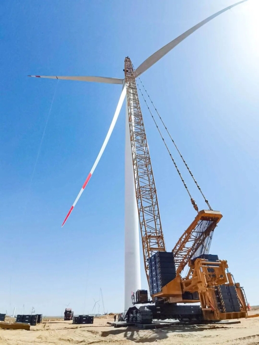 近日,徐工XLC18000M(1300噸級)履帶起重機(jī)在甘肅某風(fēng)電項(xiàng)目現(xiàn)場迎來高光時(shí)刻,圓滿完成了20臺風(fēng)機(jī)吊裝,標(biāo)志著該10萬兆瓦風(fēng)電項(xiàng)目取得階段性勝利。