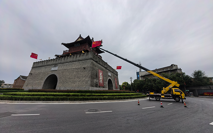 從設備就位到首面國旗掛好,施工迅速完成。過往市民紛紛駐足拍照,文昌閣周邊的節(jié)日氛圍隨國旗懸掛愈發(fā)濃厚。多重安全保障與高效作業(yè)能力,讓 “中國紅” 在古建筑旁莊重飄揚,也讓愛國情懷隨秋風傳遞街巷!