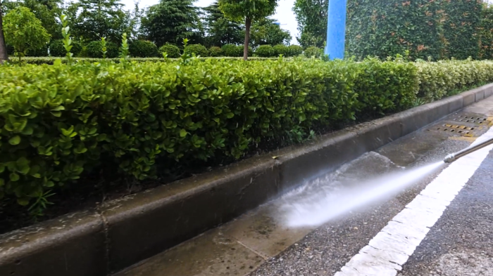 人行道與綠化帶邊緣:通過側噴桿與手持噴槍的組合操作,洗掃車可精準清理路緣石立面、綠化帶縫隙中的積塵,實現(xiàn)“無死角”保潔。