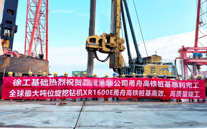 從西堠門公鐵兩用大橋施工現(xiàn)場傳來喜訊,徐工XR1600E旋挖鉆機率先完成大橋主墩6.3米超大直徑鉆孔樁,較計劃工期大大提前。